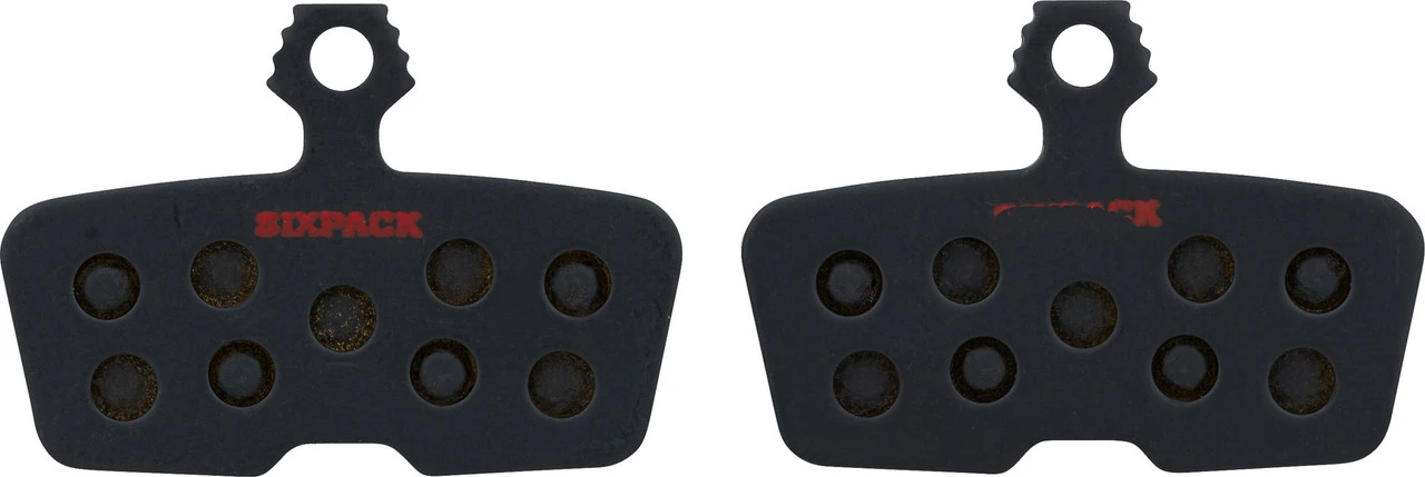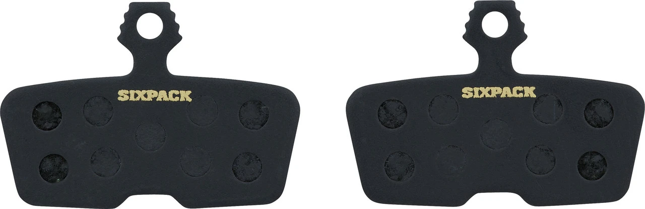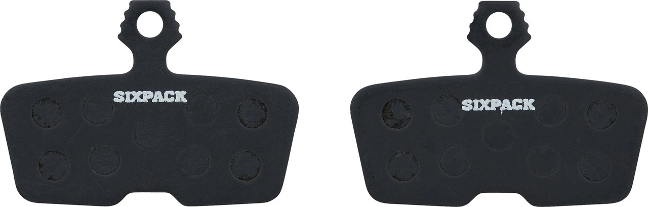 Diese Disc Bremsbeläge von Sixpack Racing eignen sich für verschiedene MTB-Scheibenbremsen von SRAM oder Avid und sind mit einer Stahl-Trägerplatte ausgestattet.