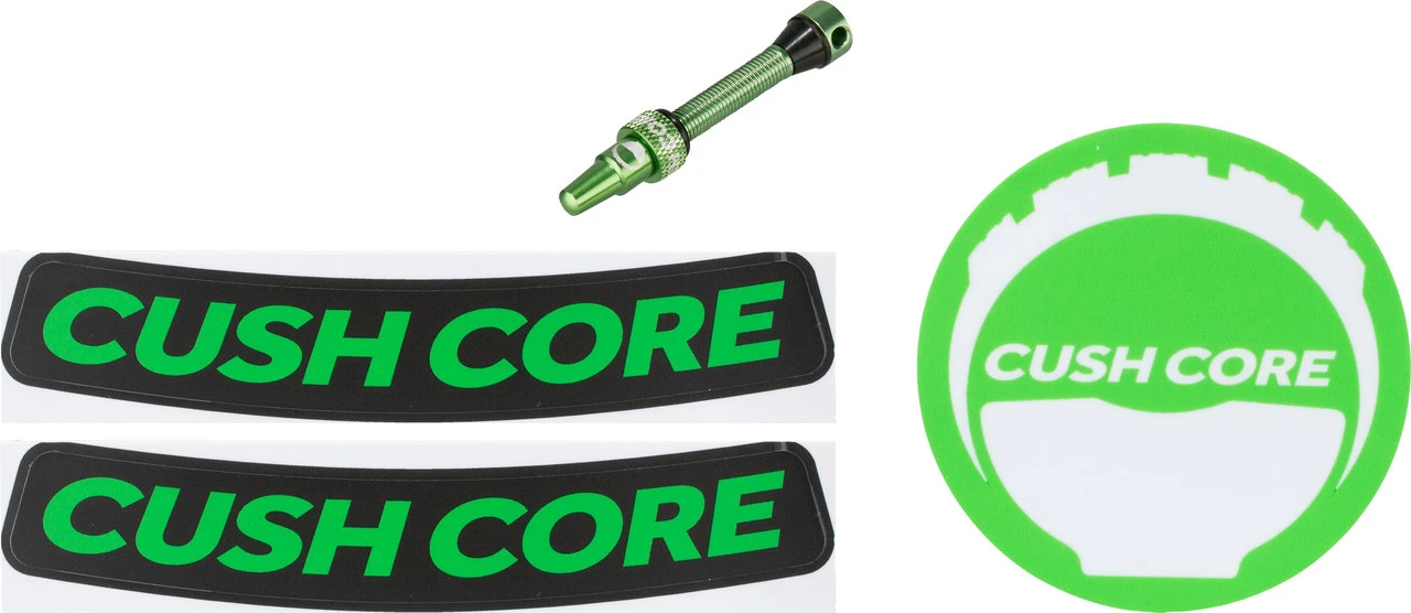 Lieferumfang:1 x Reifeneinsatz CushCore 29″1 x Tubeless Ventil CushCore grün1 x Ventilwerkzeug CushCore2 x Felgenaufkleber CushCore1 x Logo-Aufkleber CushCore