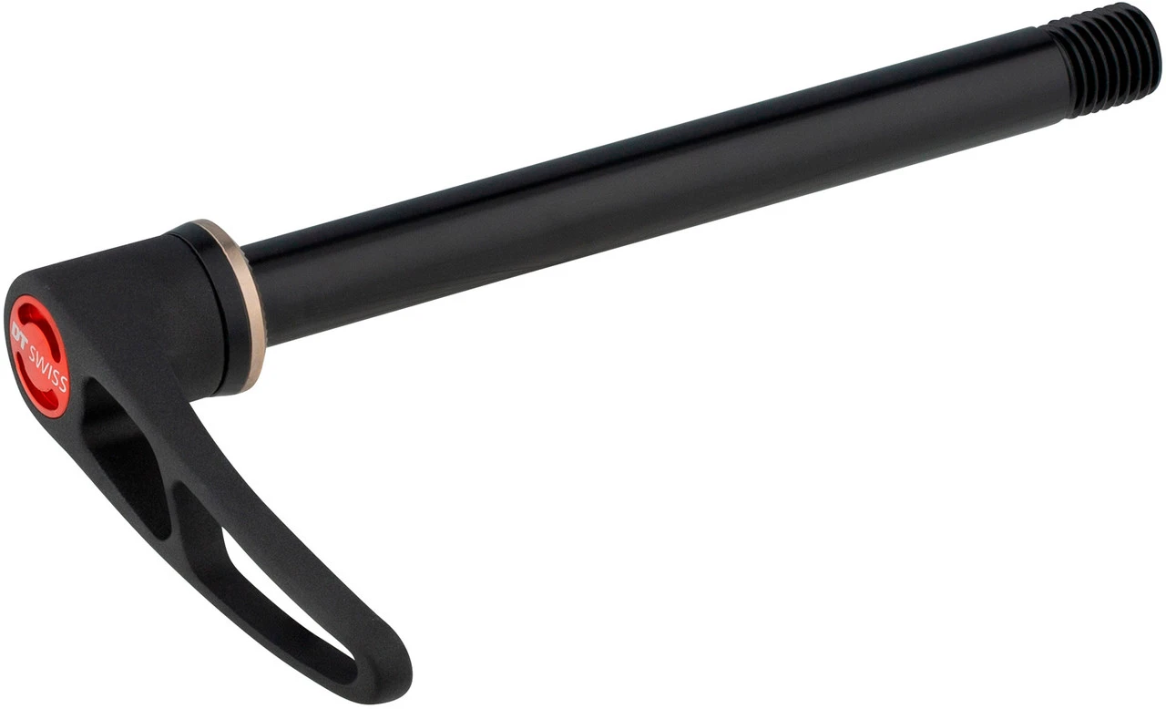 Mit der RWS Steckachse von DT Swiss kannst Du die Laufräder an Deinem Rennrad ohne Werkzeug befestigen. Damit dies gelingt, ist die Achse mit einem Schnellspannhebel ausgestattet.