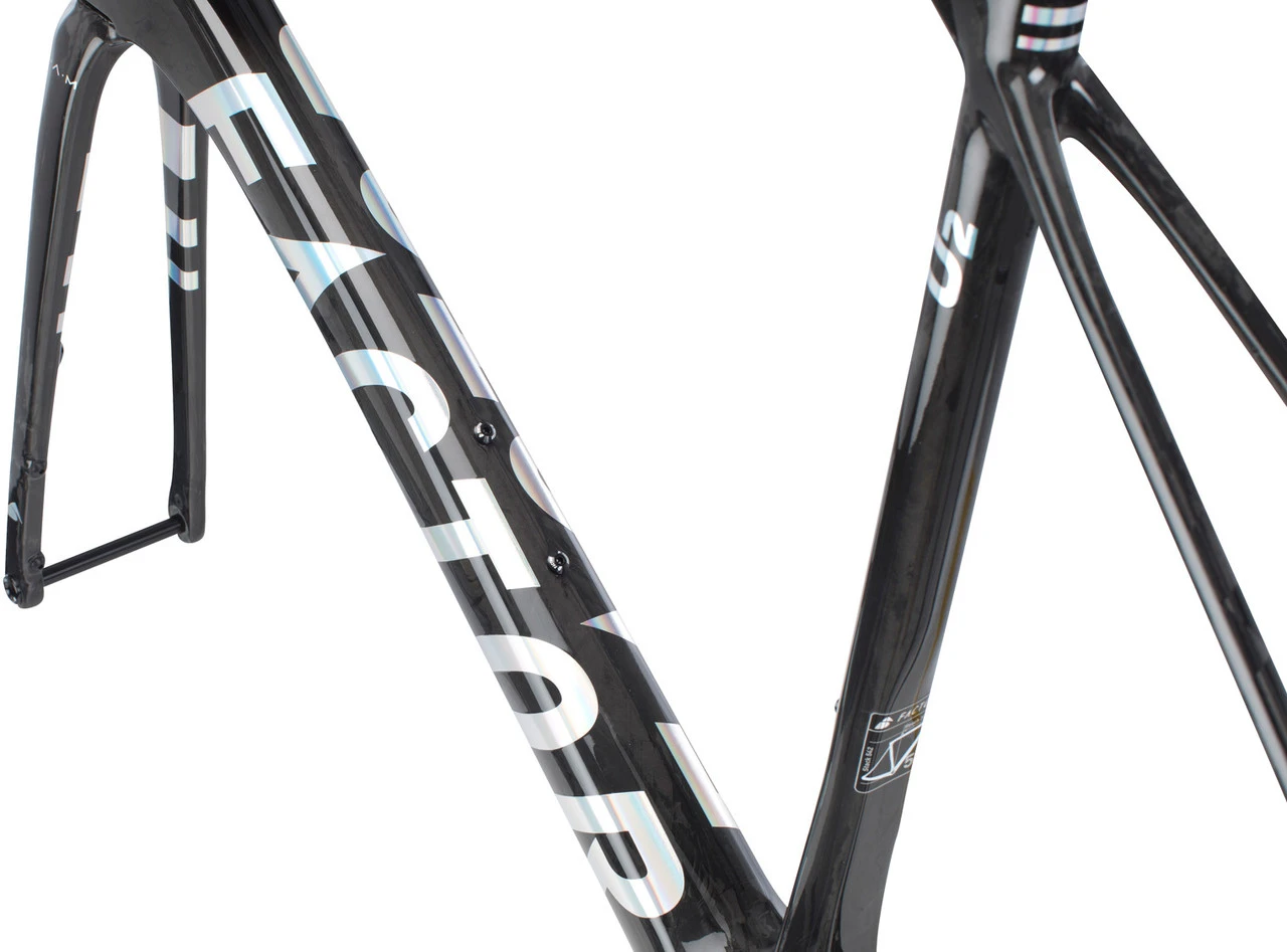 Technische Daten Rahmen:Laufradstandard:12 x 142 mm (Standard)Achsstandard:12 mm SteckachseSattelstütze (Ø):27,2 mmSattelklemme (Ø):integriertSteuersatz:IS41/28,6 – IS49/37(36) (oben zu unten)Steuerrohr:1 1/8″ – 1 3/8″ taperedInnenlagerstandard:BBrightGehäusebreite:79 mmBremsaufnahme:Flat MountUmwerferaufnahme:Direct Mount (High-Direct)Zugverlegung:intern elektrischFlaschenhalteraufnahmen:2Technische Daten Gabel:Gabelschaft:1 1/8″ taperedAchssystem:Steckachse (12 x 100 mm)Bremsaufnahme:Flat MountVorlauf:43 mm, 53 mmNachlauf:58 mm, 59 mm, 60 mmEinbaubreite:100 mmMaterial Gabelschaft:CarbonMaterial Gabelkrone:CarbonMaterial Gabelbeine:CarbonMaterial Ausfallenden:CarbonFreigaben:Gewichtsbeschränkung:120 kgBremsscheibengröße max.:160 mmReifengröße max.:700C x 30 mmKettenblattanzahl:1-fach, 2-fachFeatures:interne Kabelführungultraleichte Sattelklemmeaus TeXtreme- und Pech-CarbonfasernCeramicSpeed SteuersatzCeramicSpeed TretlagerGeometrie:49 cm: