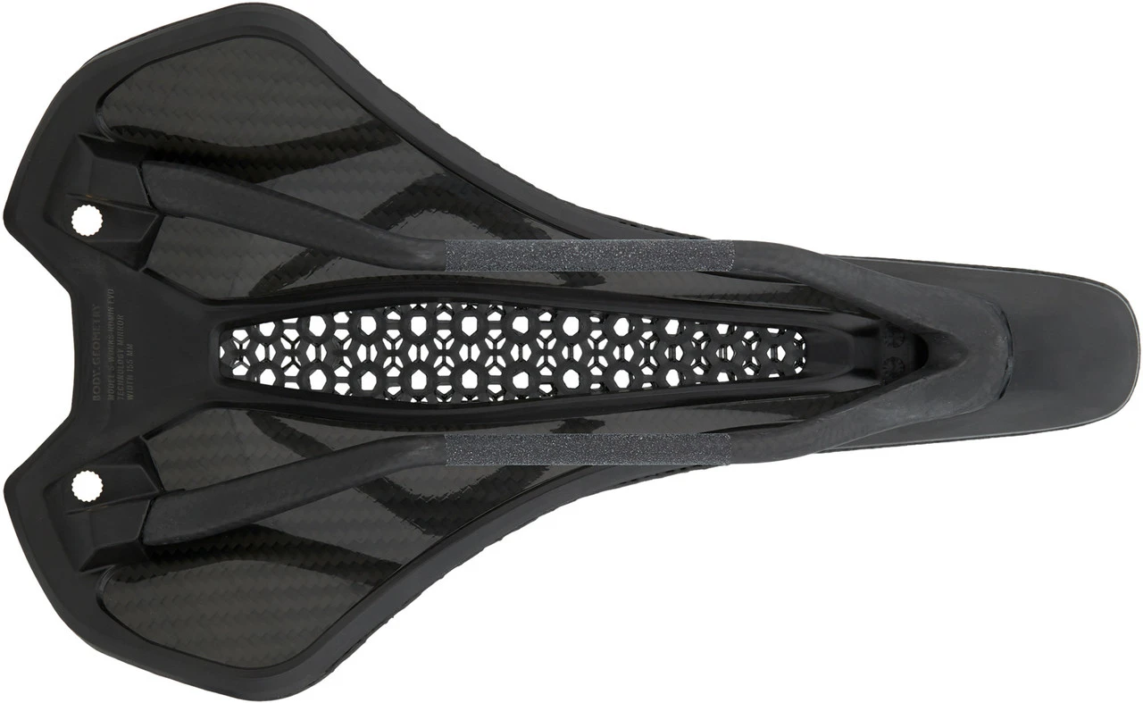 Spezifikationen:Einsatzbereich:Road, Triathlon & Time TrialBreite:143 mm, 155 mmSattelstreben:7 x 9 mm (hochoval)Technische Daten:Material Streben:CarbonMaterial Schale:CarbonMaterial Polsterung:PolymerMaterial Bezug:PolymerFeatures:Mirror-Technologie mit 3D-Druckverfahren aus flüssigem Polymer, erzeugt einzigartige Wabenstruktur, für hervorragende Sitzknochenunterstützung und überlegenen Komfortpatentiertes, im Labor entwickeltes Body Geometry-Design für optimale Durchblutung der empfindlichen ArterienSattelschale aus FACT-Carbon mit optimalem Verhältnis aus Nachgiebigkeit und SteifigkeitOversized-Sattelstreben aus FACT-Carbon sind superleicht, steif und robustzwei Gewinde in der Sattelschale erlauben das Anbringen von SWAT-Zubehör, z. B. Road Bandit, Stormproof SatteltaschenTechnologien:FACT™