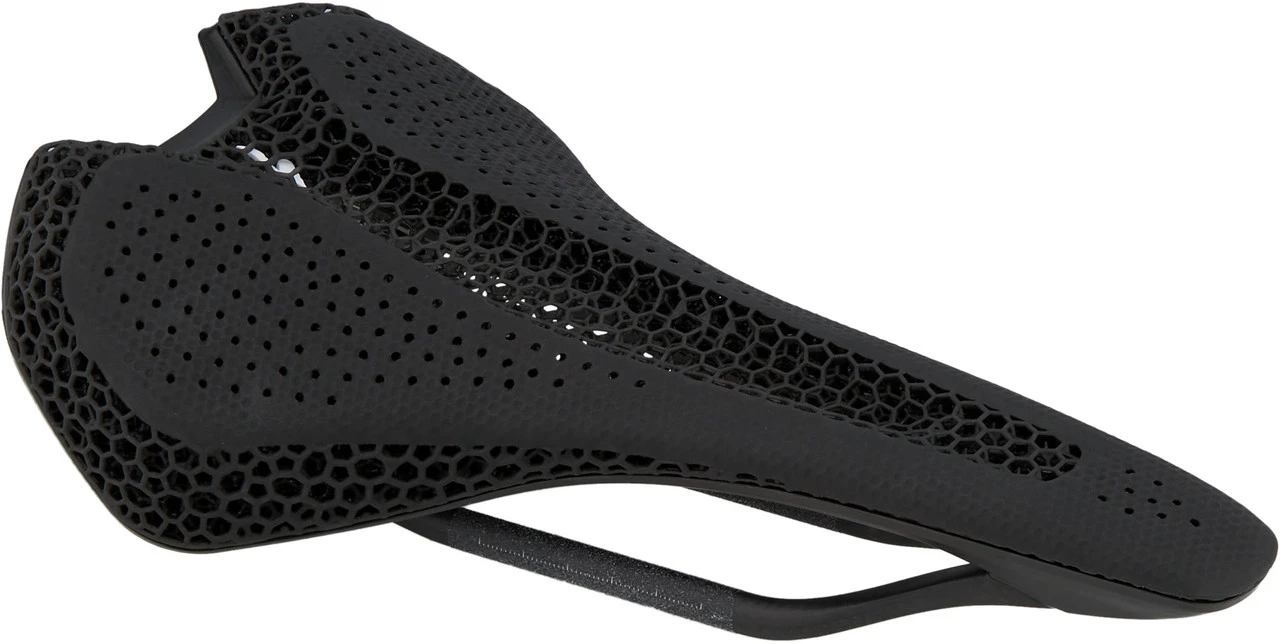 Beim S-Works Power Mirror Sattel arbeitet Specialized nicht wie üblich mit Schaumstoff oder Gel, sondern mit einem flüssigen Polymermaterial, das durch ein einzigartiges 3D-Druckverfahren in eine Wabenstruktur gebracht wird. Es entsteht eine Matrix mit Tausenden von Verstrebungen und Knoten, die sich feiner und somit wesentlich anatomischer formen lässt, als dies mit Schaumstoff je möglich wäre. Der Druck wird so viel großflächiger verteilt und Druckspitzen werden vermieden, was für unnachahmlichen Komfort sorgt und die Leistungsfähigkeit des Fahrers deutlich erhöht.
